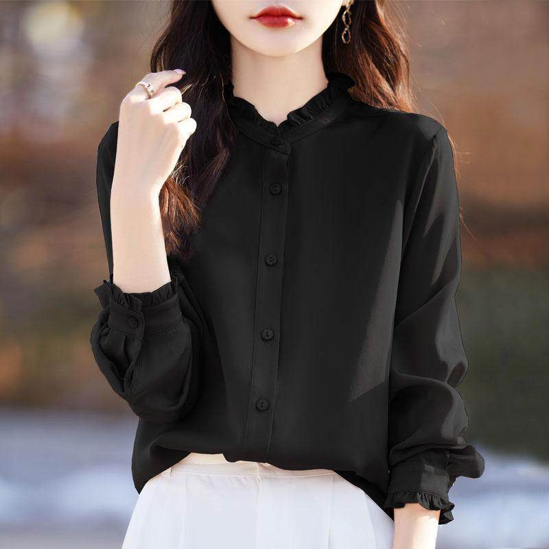 气质木耳边衬衫女外套衬衣立领优雅打底开衫内搭时尚上衣长袖百搭