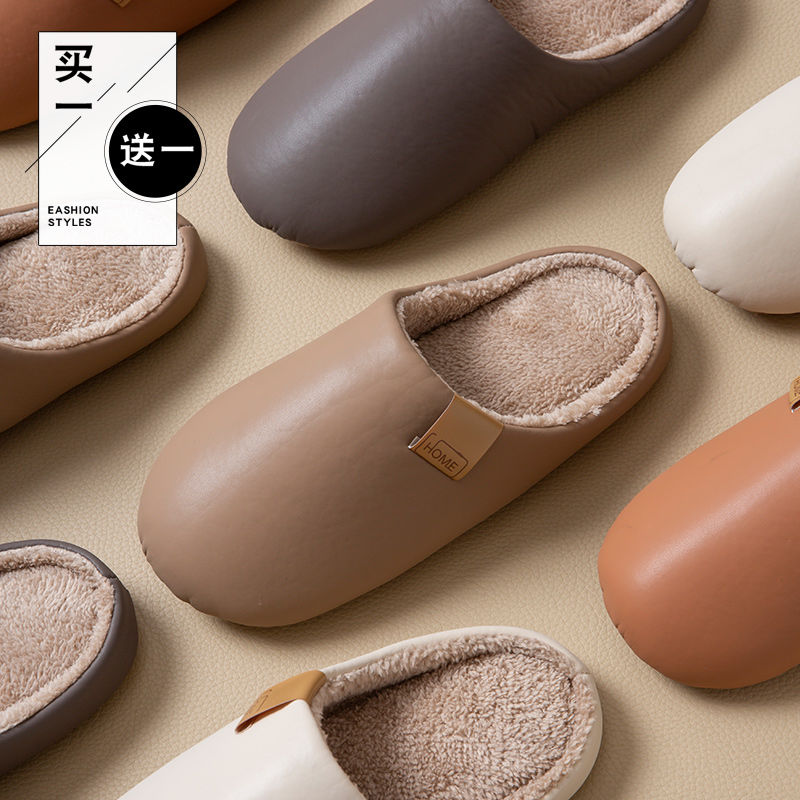 买一送一日式静音棉拖鞋室内女冬季家用保暖防滑加绒包头男款冬款