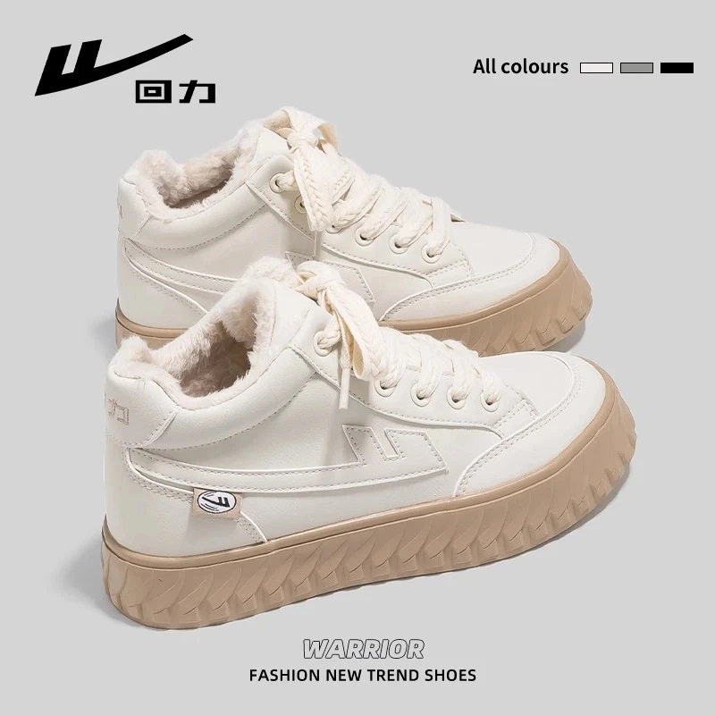 回力女鞋加绒高帮小白鞋女秋秋2025新款休闲鞋子女冬季保暖二棉鞋