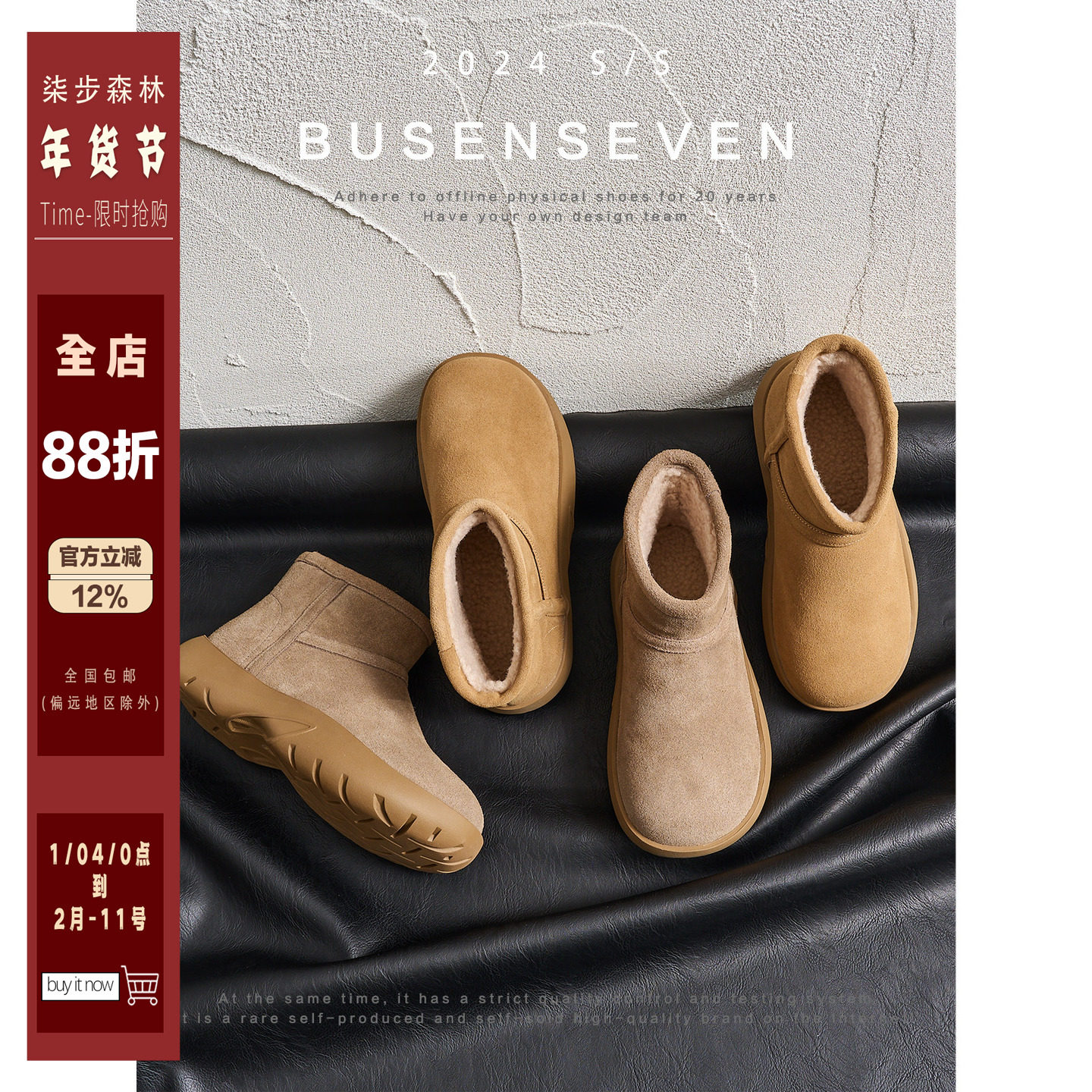 柒步森林"小暖炉"牛反绒厚底周冬雨同款雪地靴保暖加绒棉鞋子女冬