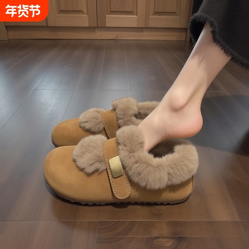 冬鞋一脚蹬内增高毛毛勃肯鞋子女冬加绒保暖毛绒2025新款爆款棉鞋