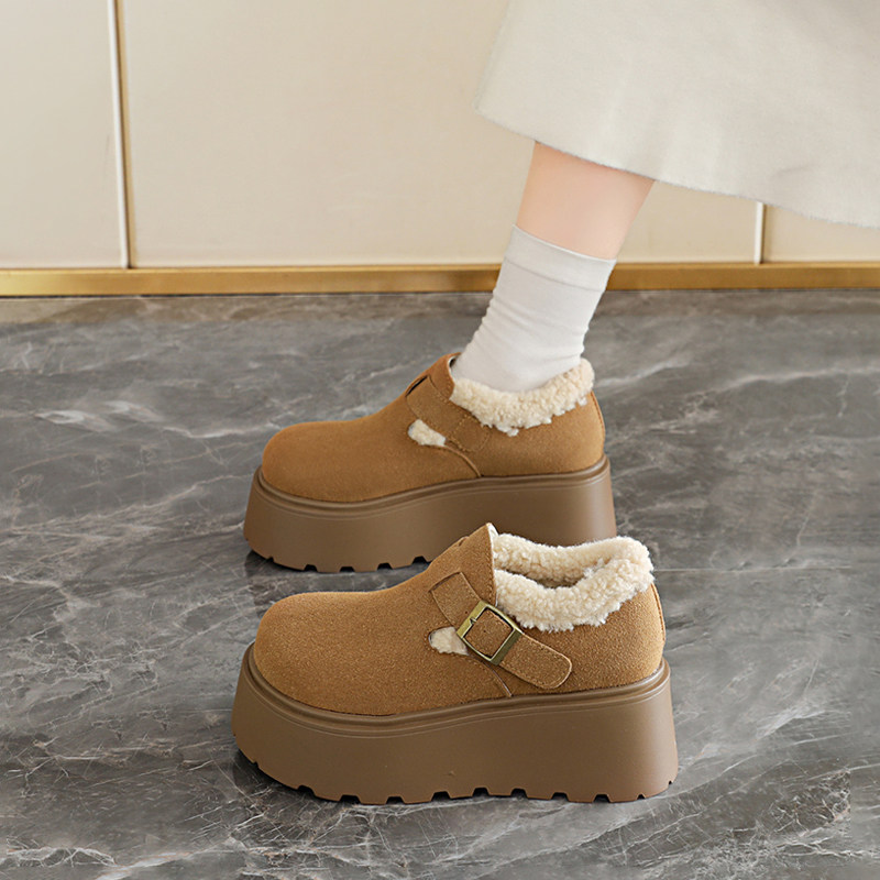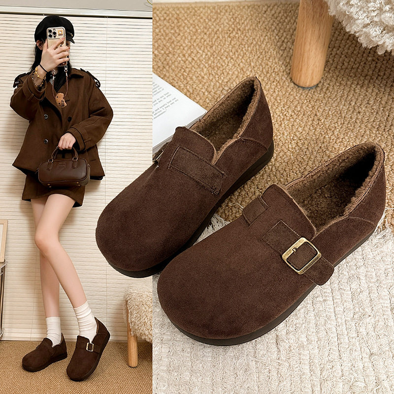 鞋子女冬加绒厚底增高雪地靴女勃肯鞋2025保暖乐福鞋34码毛毛棉鞋