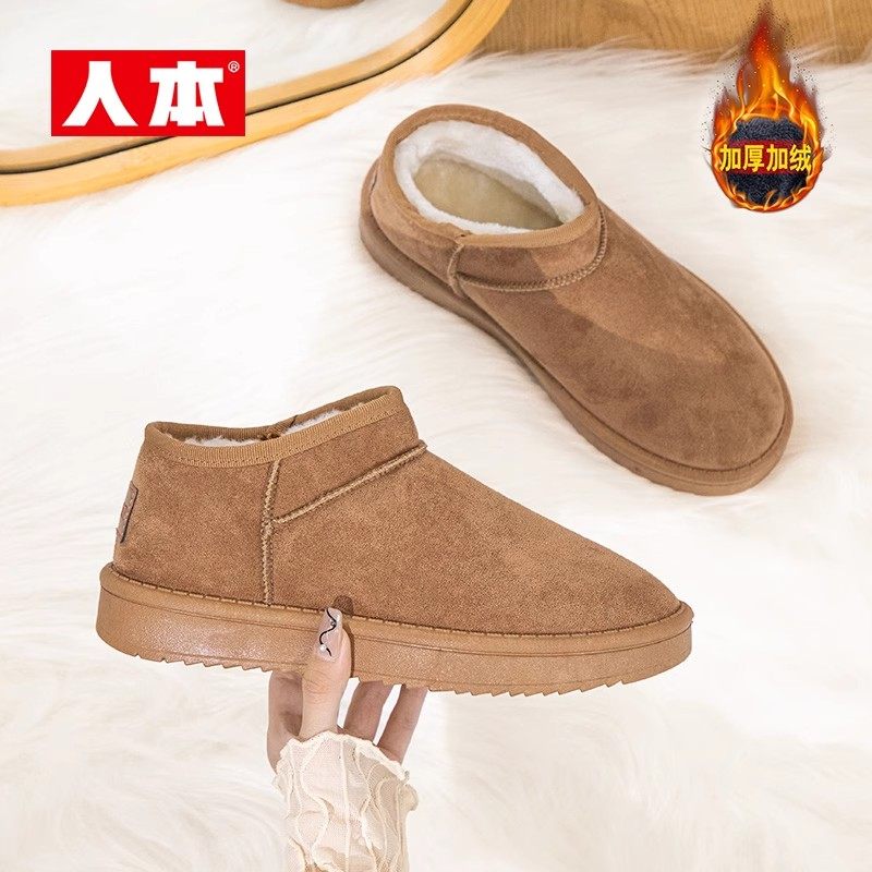 人本厚底雪地靴女款冬季2025新款加绒加厚二棉鞋子女冬保暖面包鞋