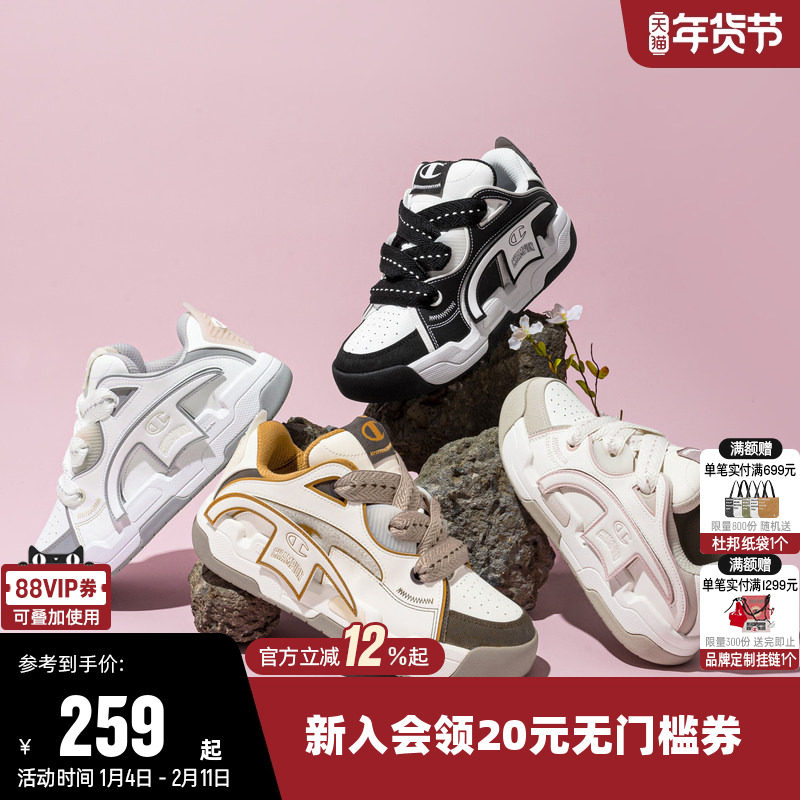 Champion冠军面包鞋子女冬季TronSkate V1撕撕乐厚底休闲板鞋男