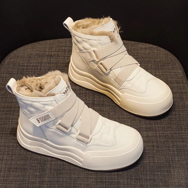 高帮小白鞋女2024新款百搭真皮鞋子女冬季保暖雪地靴加绒加厚棉鞋