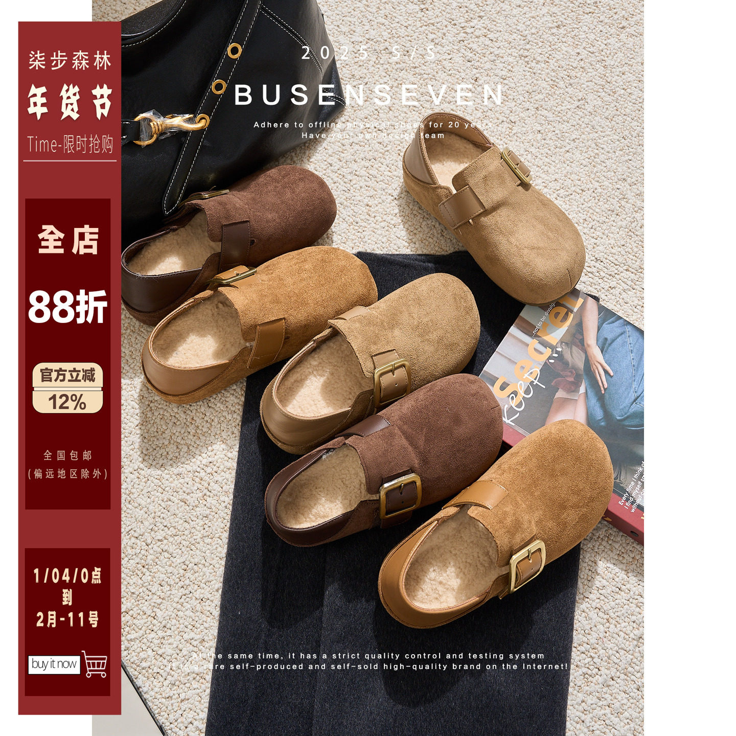 柒步森林牛反绒内增高加绒勃肯鞋甜美百搭毛毛棉鞋子女冬2025新款