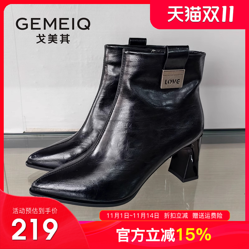 戈美其女鞋2025冬季新款爆款靴子尖头细跟侧拉链短靴性感及裸靴