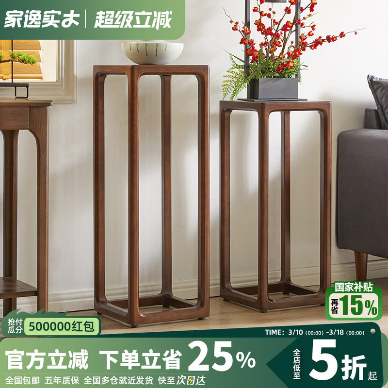 家逸花架实木置物架客厅室内中式现代简约花盆架美式高低花几落地
