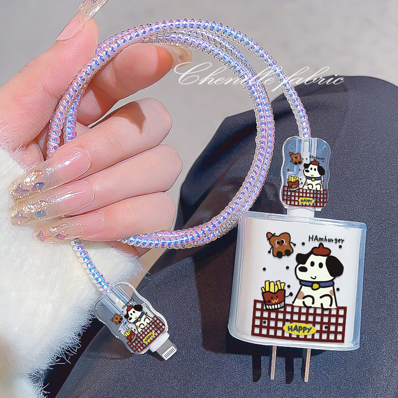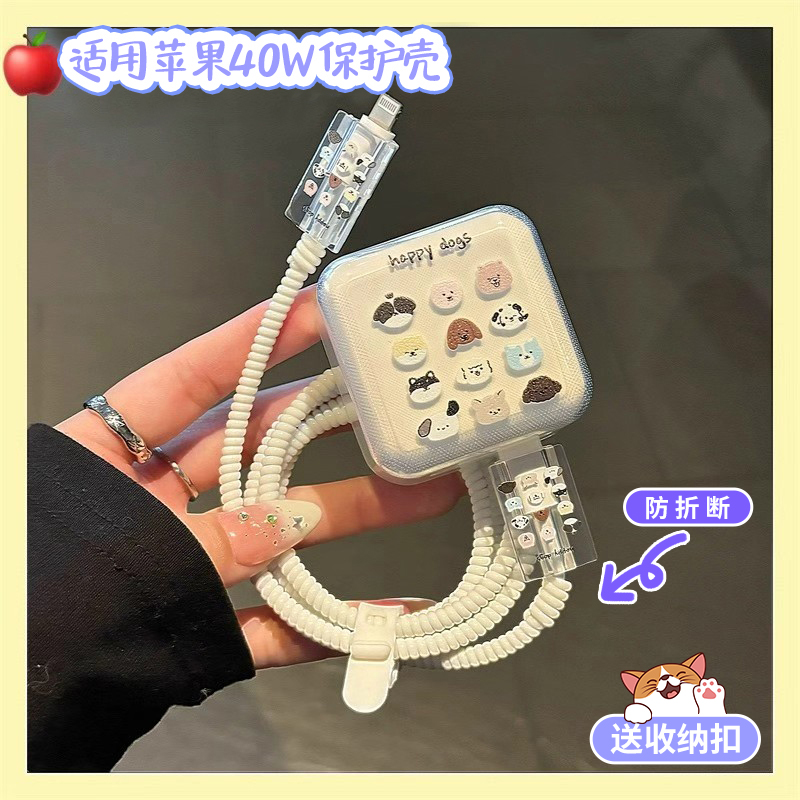 小狗20w苹果充电器保护套适用iphone16充电头数据线缠绕绳防折断