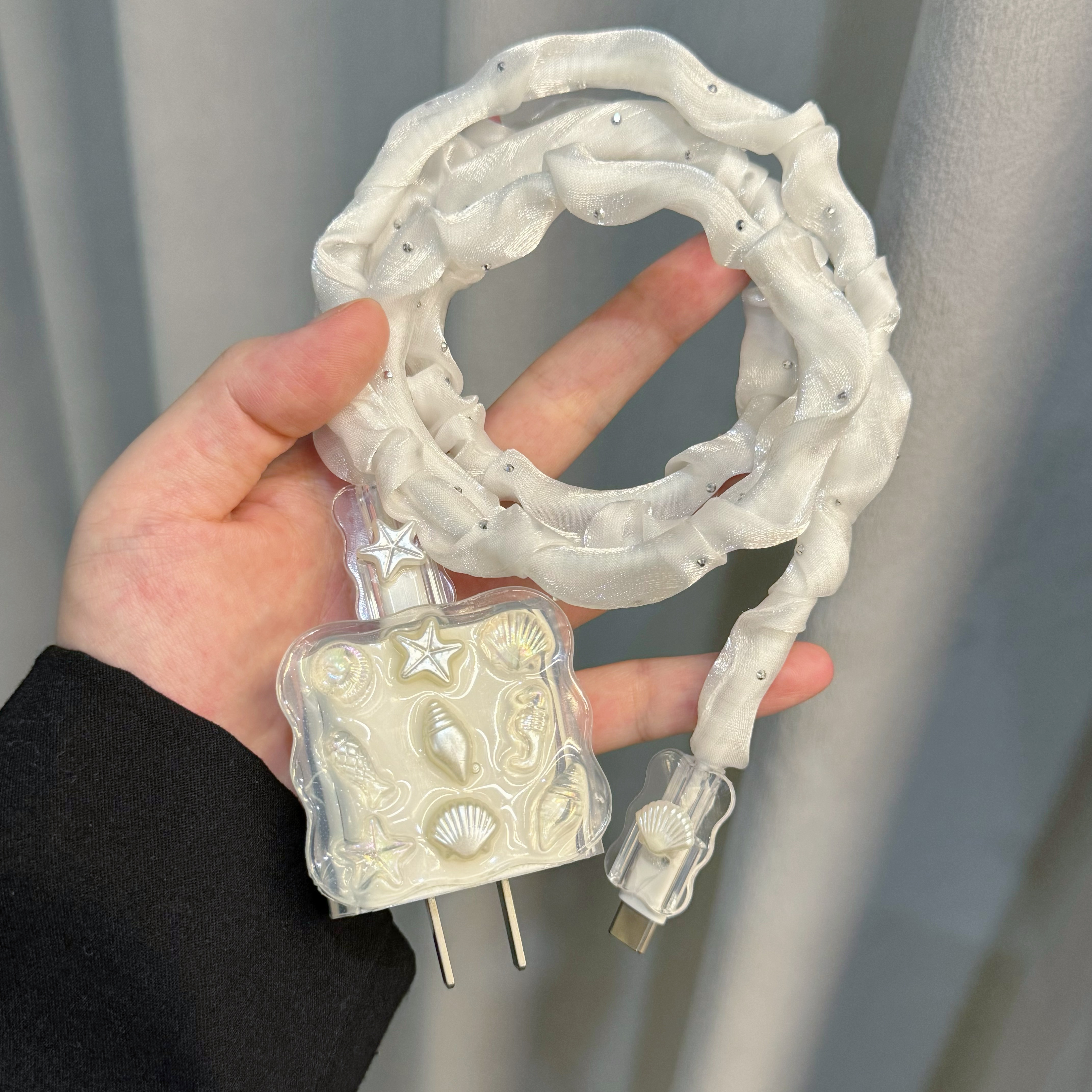 海洋贝壳适用苹果充电器保护套20w清新苹果17pro数据线保护套16女