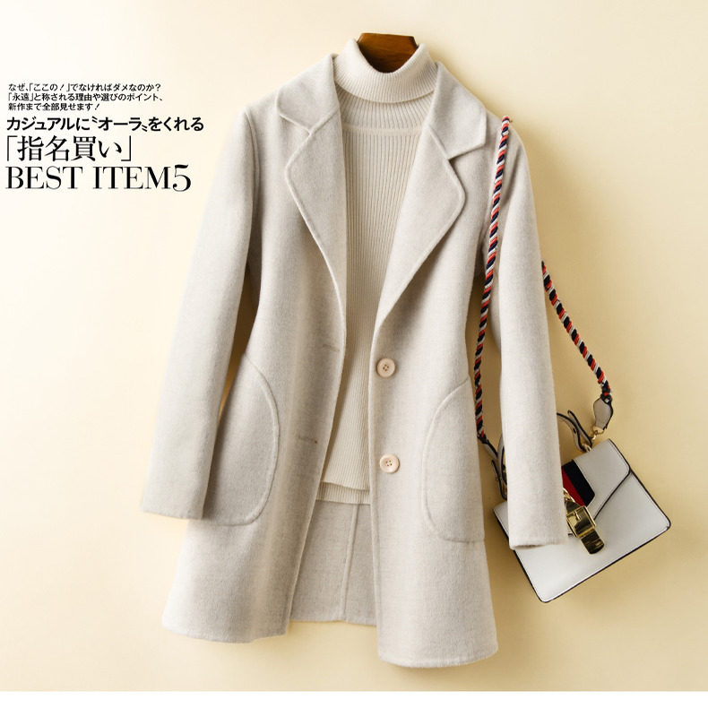 新款双面羊绒大衣女中长款西装双面呢小个子羊毛呢子工装毛呢外套