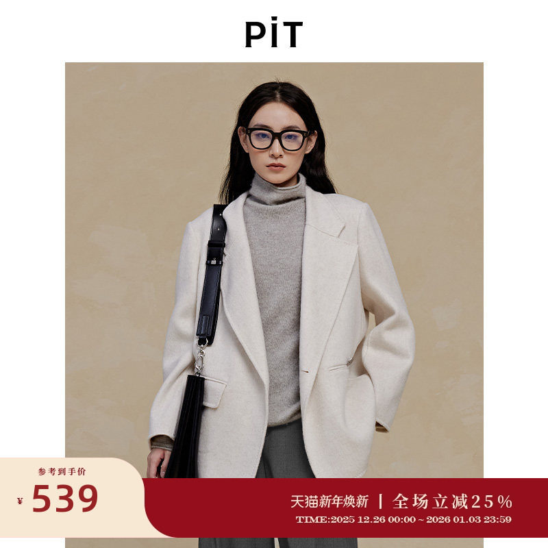 PIT中长款100%绵羊毛呢大衣女小西装2025冬季新款薄款显瘦百搭