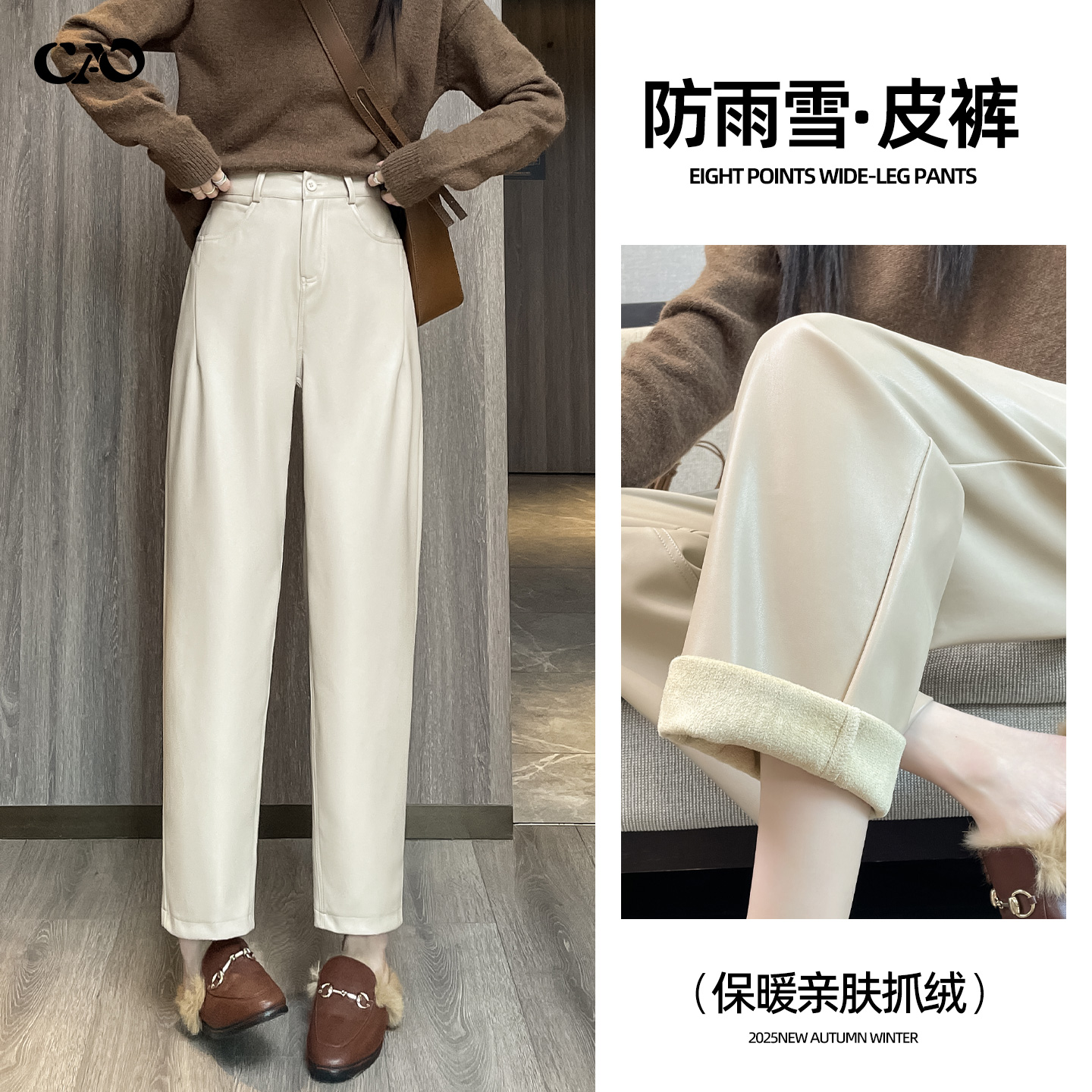 蜜糖之城皮裤女秋冬加绒哈伦裤2025新款高腰宽松九分显瘦PU烟管裤