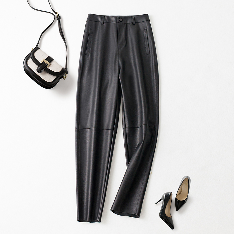 2025春季新款绵羊皮皮裤真皮皮裤女哈伦裤直筒小脚显瘦阔腿九分裤