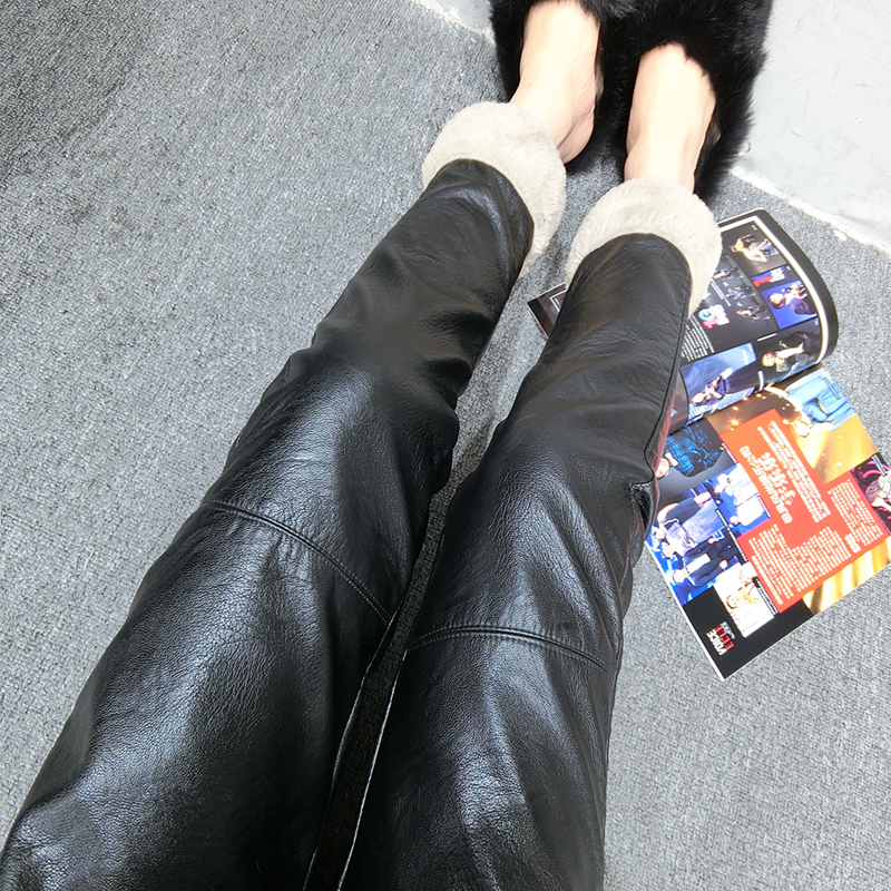 九分绵羊皮裤女2025秋冬季新款高腰显瘦哈伦裤小脚休闲加绒裤子