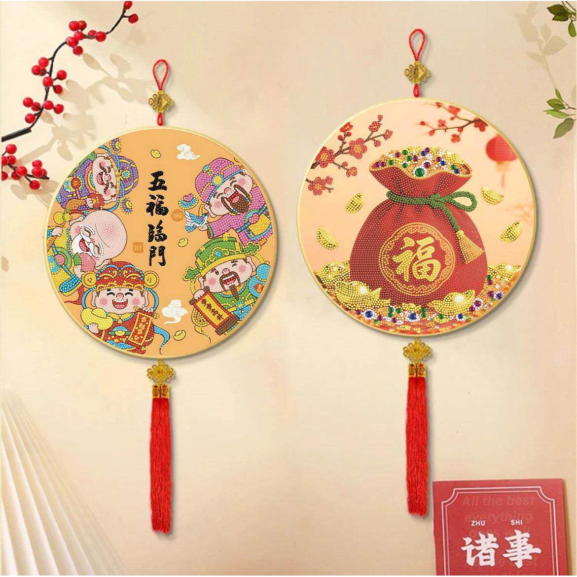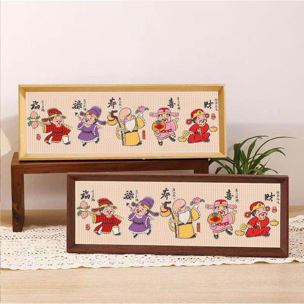 新年国风财神爷钻石贴画手工DIY五福临门元宝摆台装饰春节钻石画