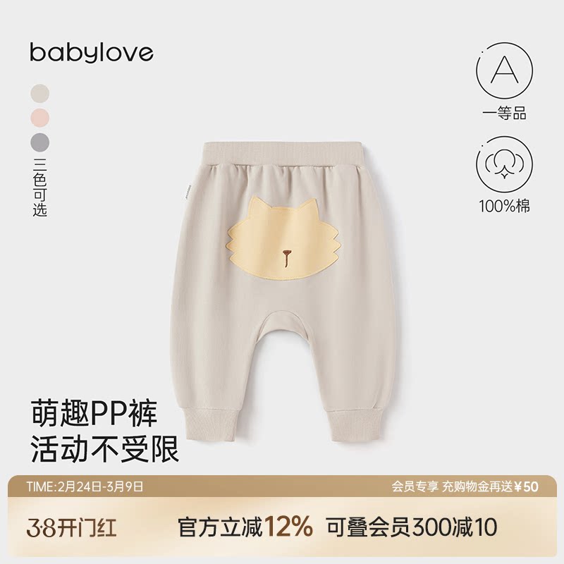 babylove男女宝宝裤子春秋纯棉宽松大pp裤外出长裤可爱百搭休闲裤