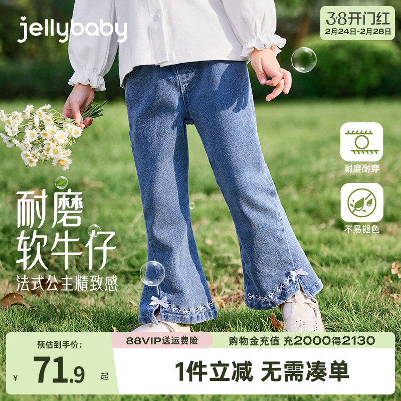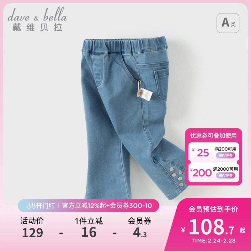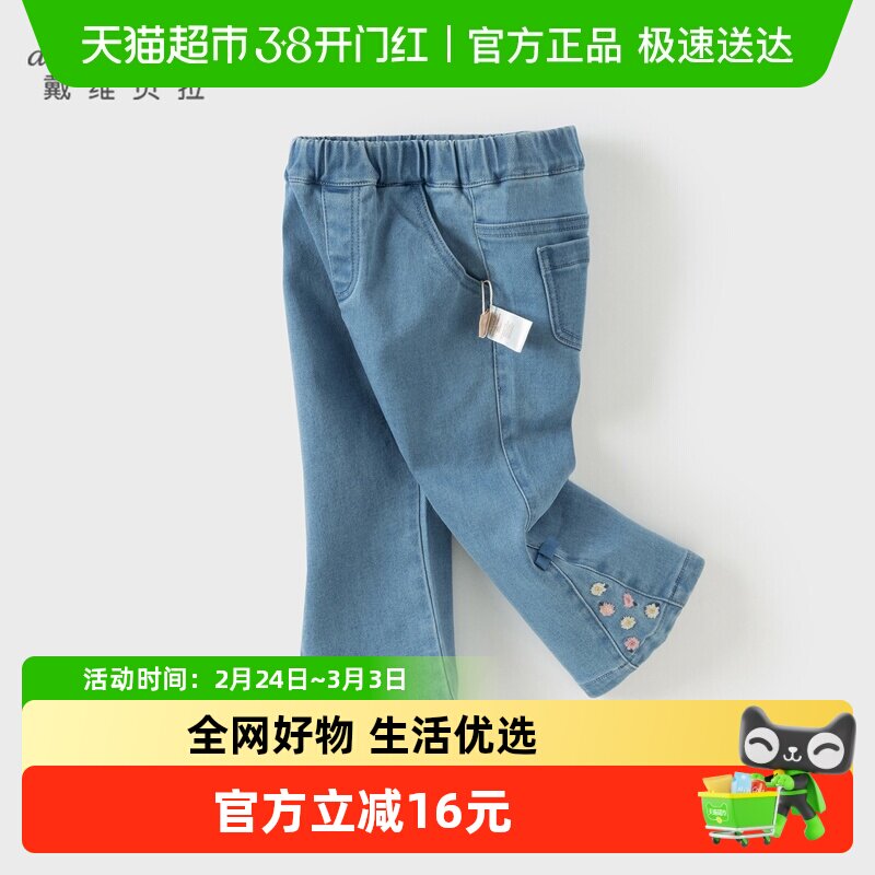 戴维贝拉女童牛仔裤儿童喇叭裤2026秋季新款微喇裤女宝宝裤子长裤