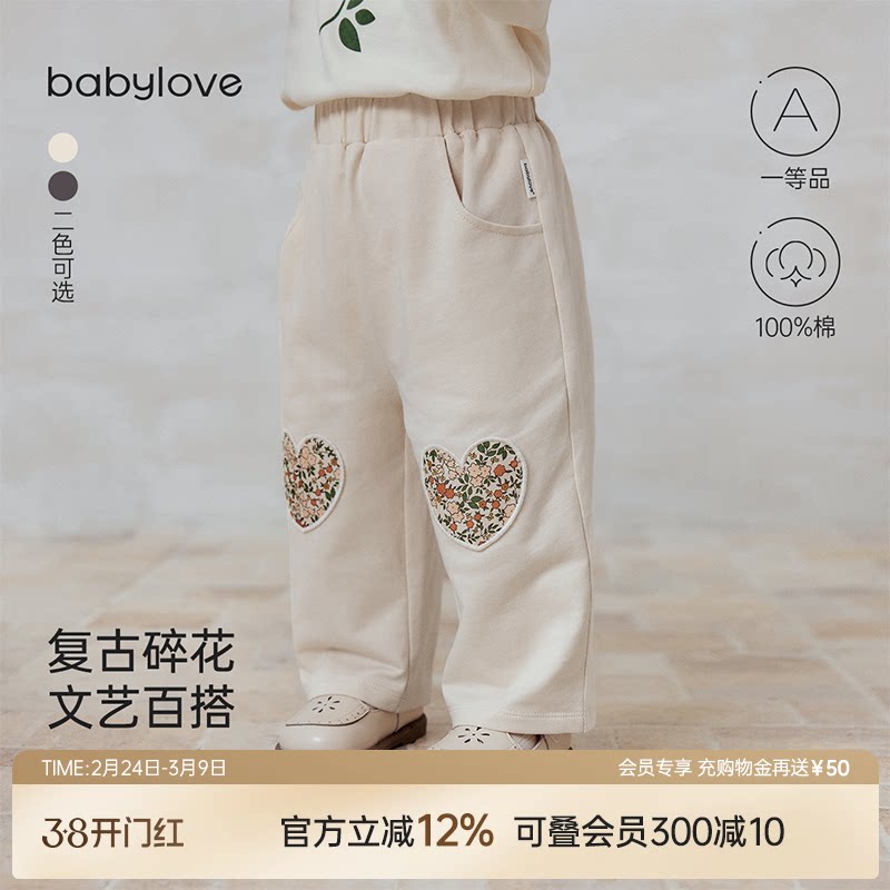 babylove女宝宝裤子春秋纯棉长裤婴幼儿可爱休闲裤儿童百搭直筒裤