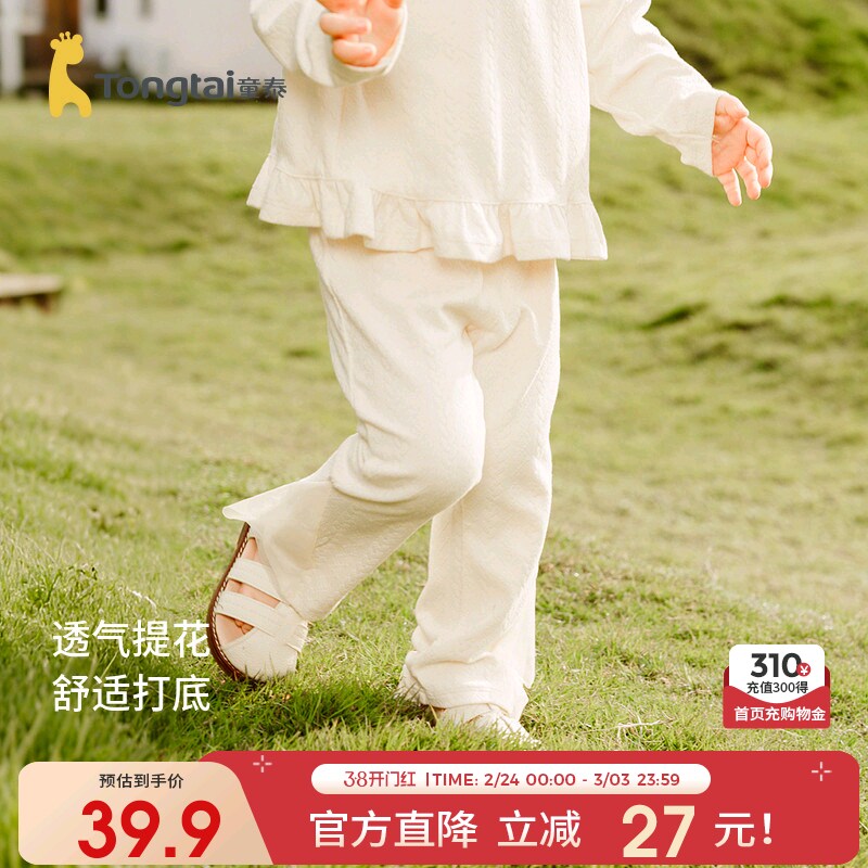 童泰女宝宝裤子春秋季女童提花打底裤儿童外出可爱蕾丝边长裤童装