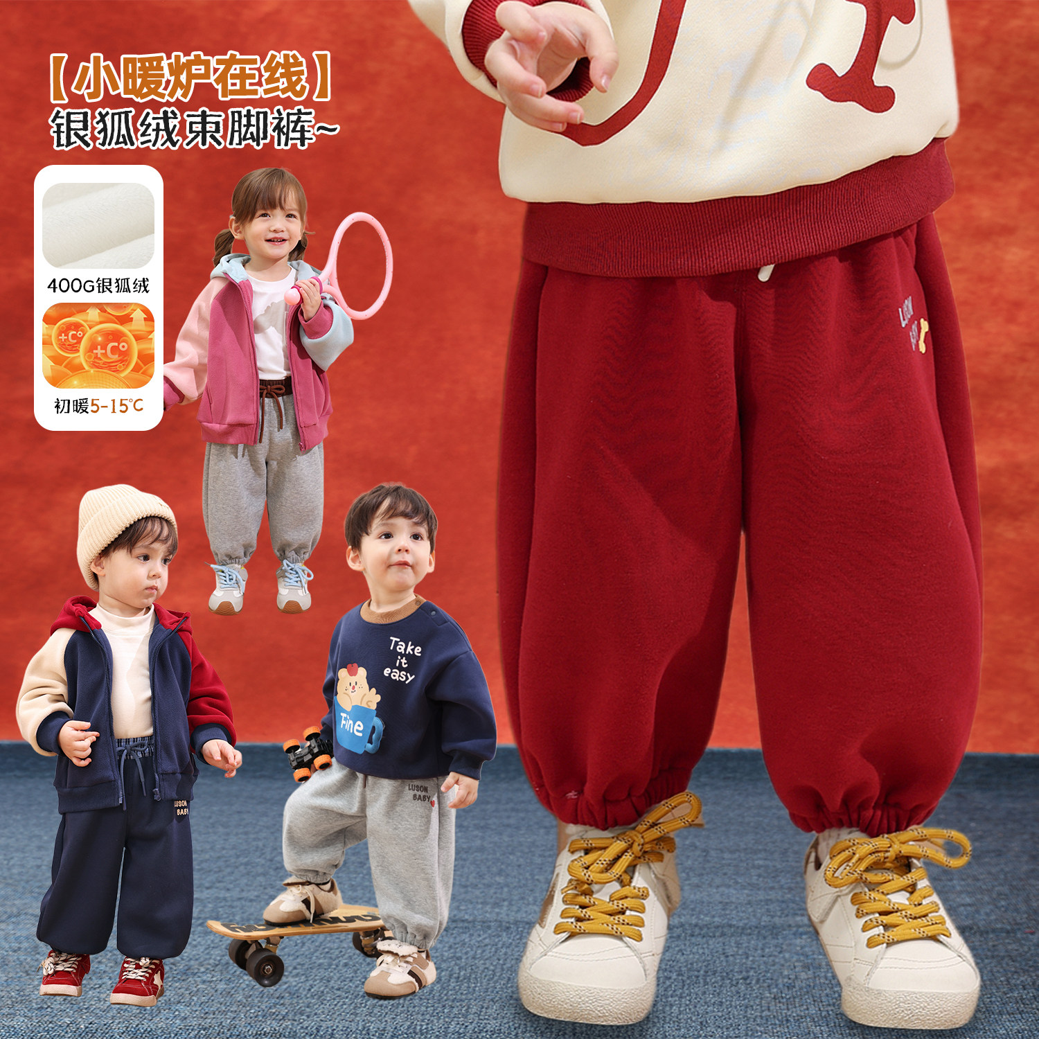 巴拉巴拉童装儿童加绒长裤子男童2026冬装新款红色拜年服女童宝宝
