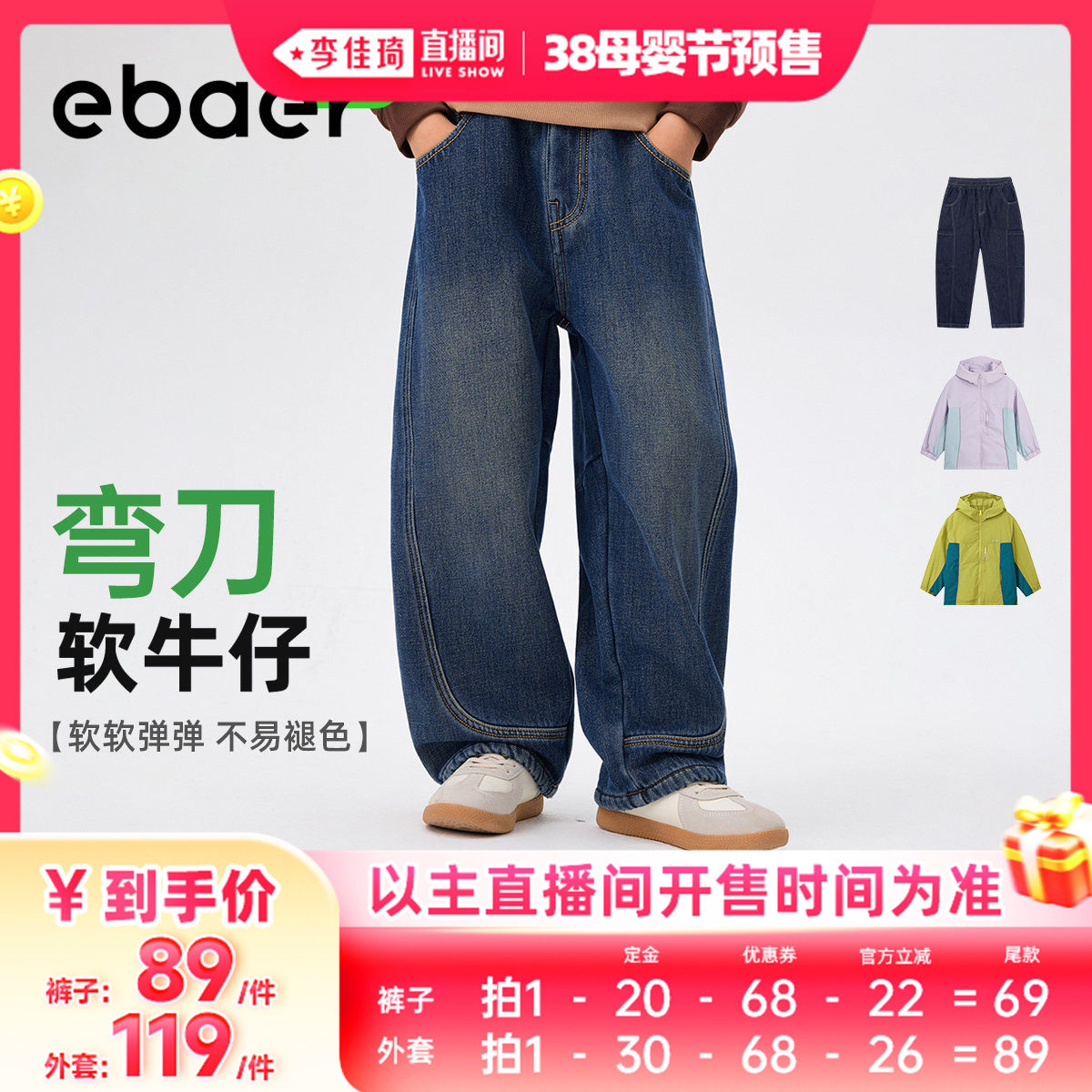 【李佳琦直播间母婴节付定金】ebaer儿童弯刀裤外套男女宝宝裤子