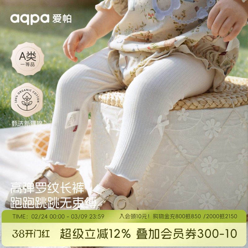 aqpa爱帕婴儿打底裤小月龄春秋新款女宝宝裤子白色百搭裤可爱外出