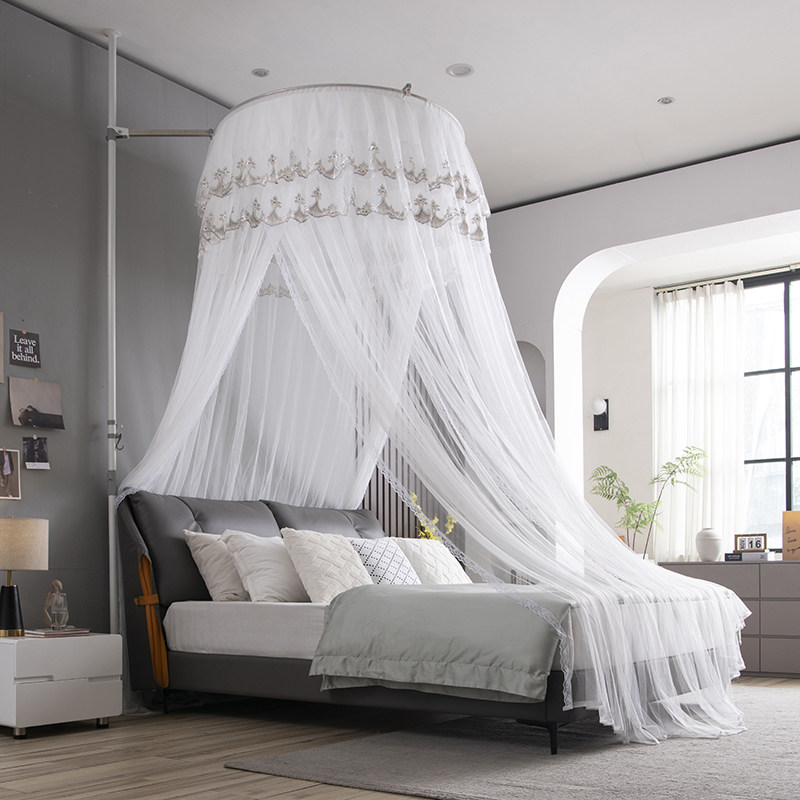 天地支伸缩杆蚊帐圆顶伸缩1.8m床新款家用加密公主加粗支架悬吊式