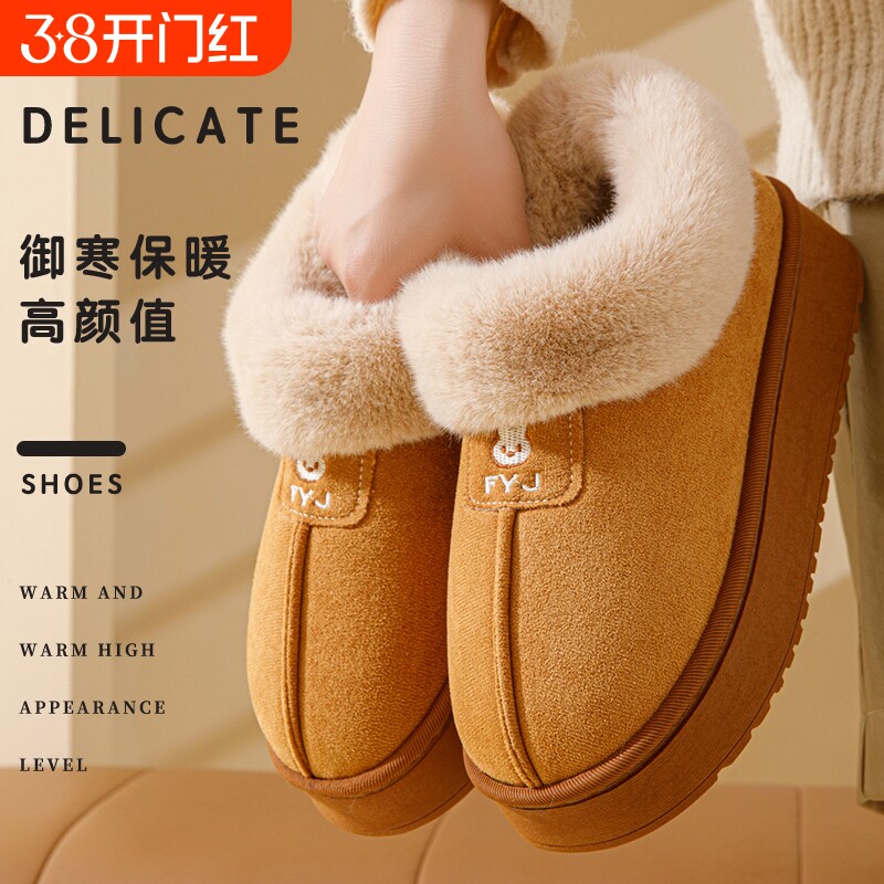 初雪小奶驼~!巨厚加绒外穿毛毛棉拖鞋女冬季厚底保暖防滑雪地靴