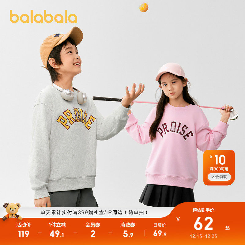 巴拉巴拉童装儿童卫衣女童男童2025新款春秋装宽松加绒上衣拼色潮