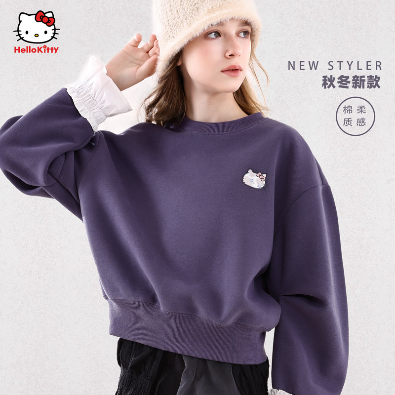 春秋女士纯棉短款高腰卫衣韩版洋气减龄百搭小个子套头长袖上衣服