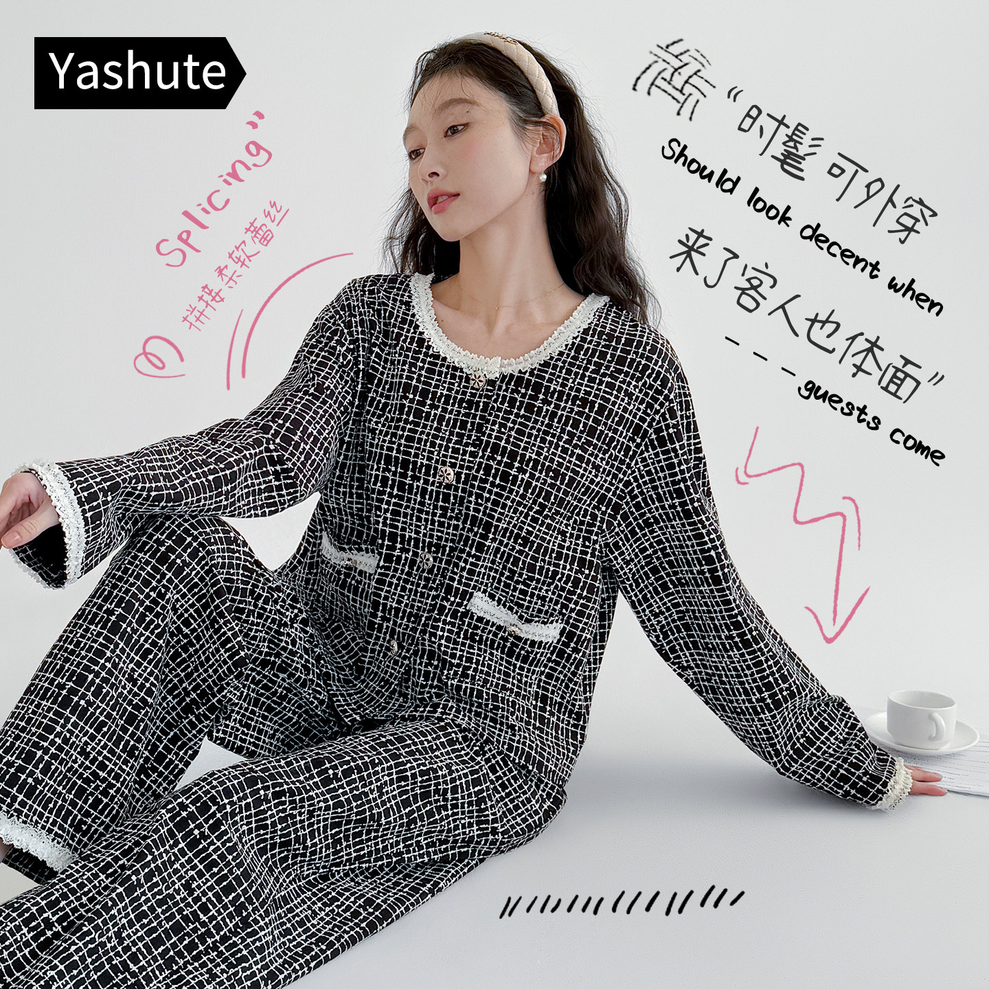 睡衣春秋2025新款纯棉套装高级感小香风可外穿休闲家居服两件套