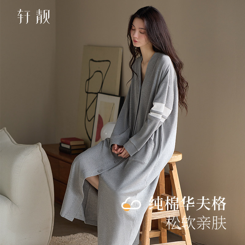 轩靓睡袍女春秋季纯棉长袖睡衣休闲慵懒风睡裙大码浴袍秋冬家居服
