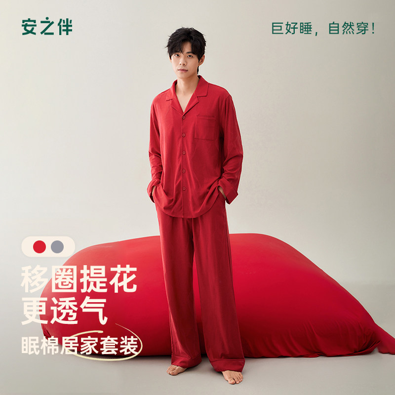 安之伴【巨柔软】男士睡衣春秋季2026年新款红色本命年长袖家居服