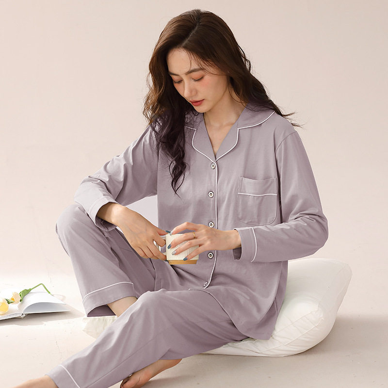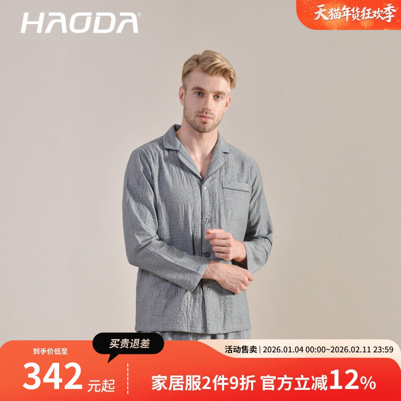 【裸感】昊达男睡衣春夏纯棉家居服女纯色可外穿中年简约透气棉纱