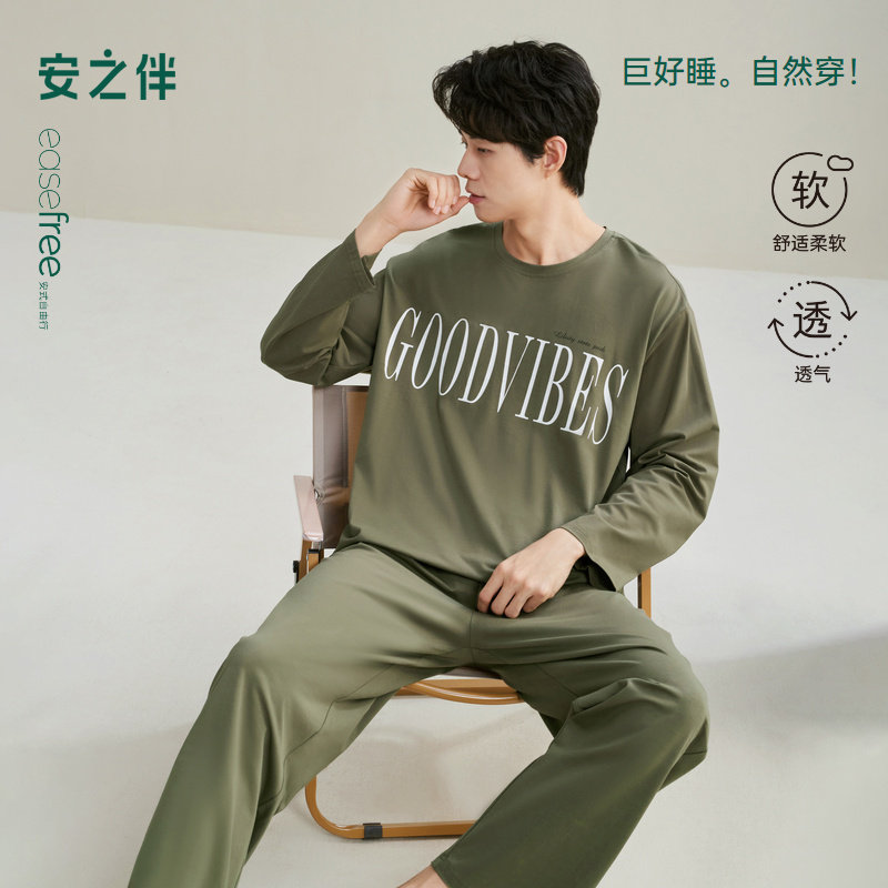 安之伴【巨柔软】男士睡衣春秋季2025新款纯棉宽松大码家居服套装