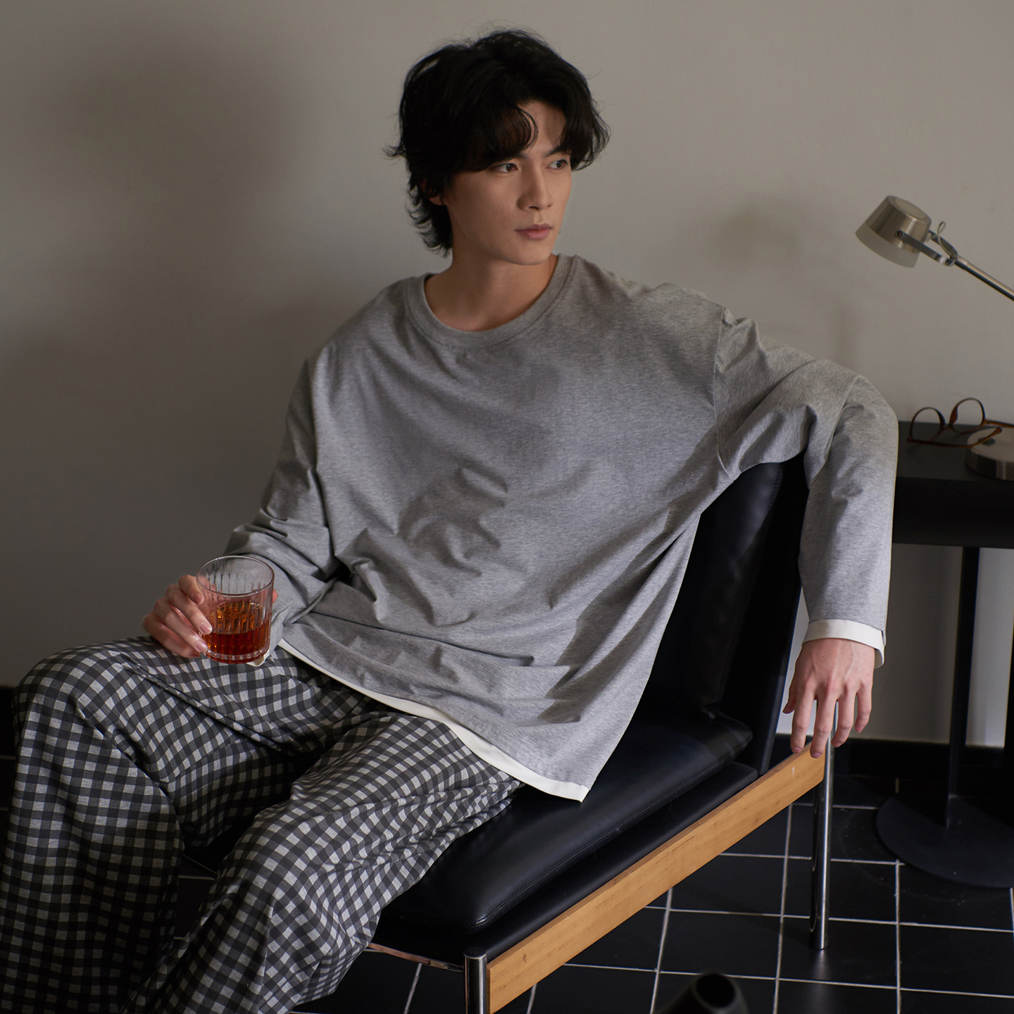 马克公主慵懒日系男生睡衣春秋季新款纯棉格子长裤休闲男士家居服