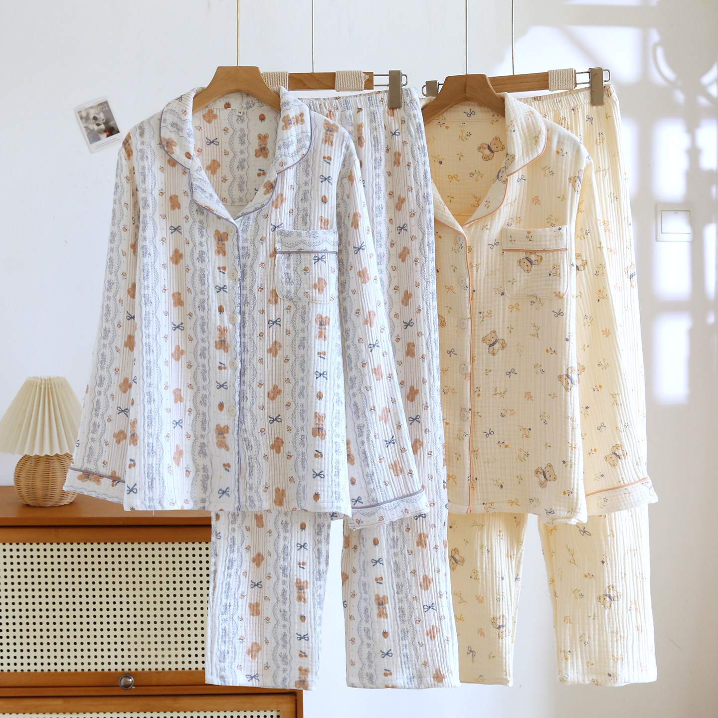 2025新款睡衣春秋季女云朵棉双层纱布长袖家居服套装可外穿秋冬款