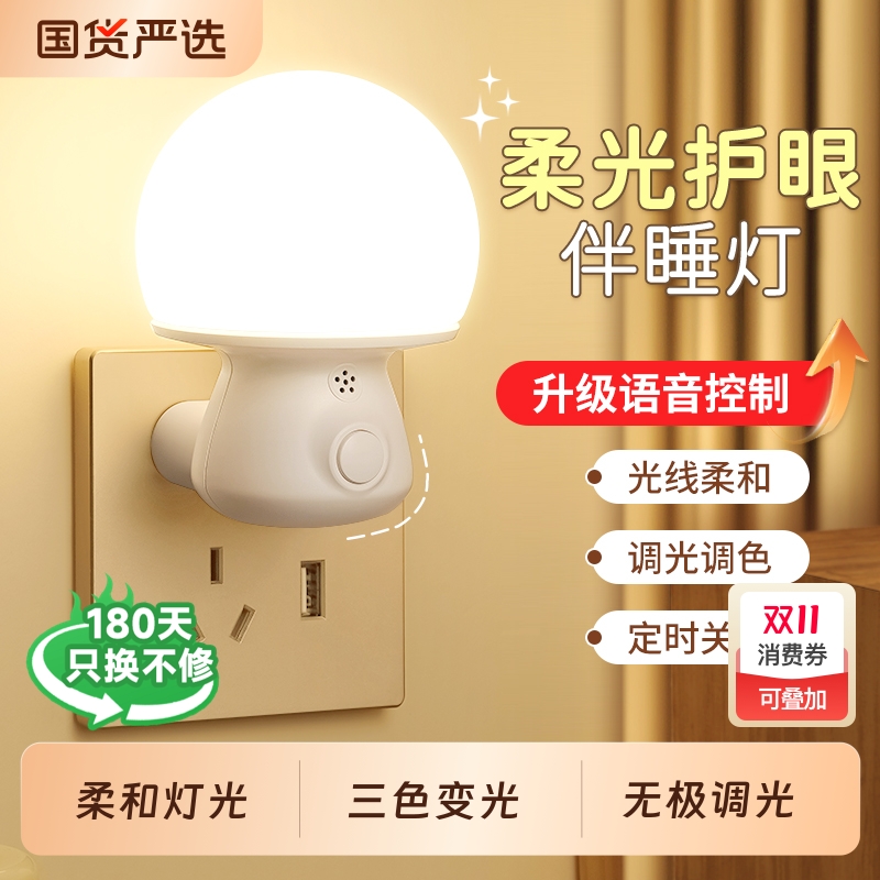 床头卧室睡眠灯婴儿喂奶护眼语音控制老人起夜间节能小夜灯插电款