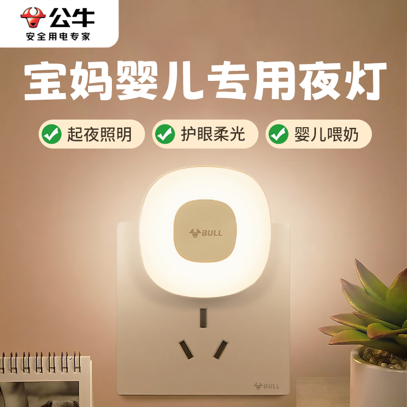 公牛小夜灯卧室睡眠灯插电款婴儿专用喂奶护眼儿童微光夜间床头灯