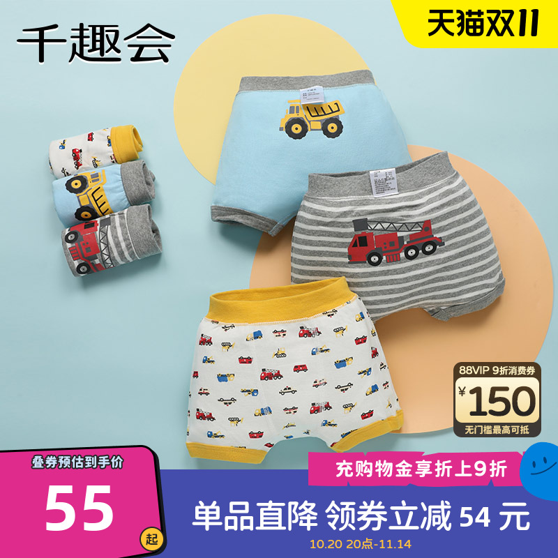 千趣会童装夏季男童工程车卡通动物三角短裤透气棉质儿童平角内裤
