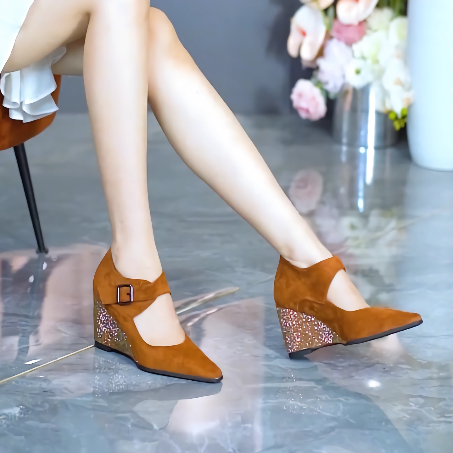 巨软~森女皮带扣绒面内增高玛丽珍鞋女2025秋新款浅口方头单鞋女