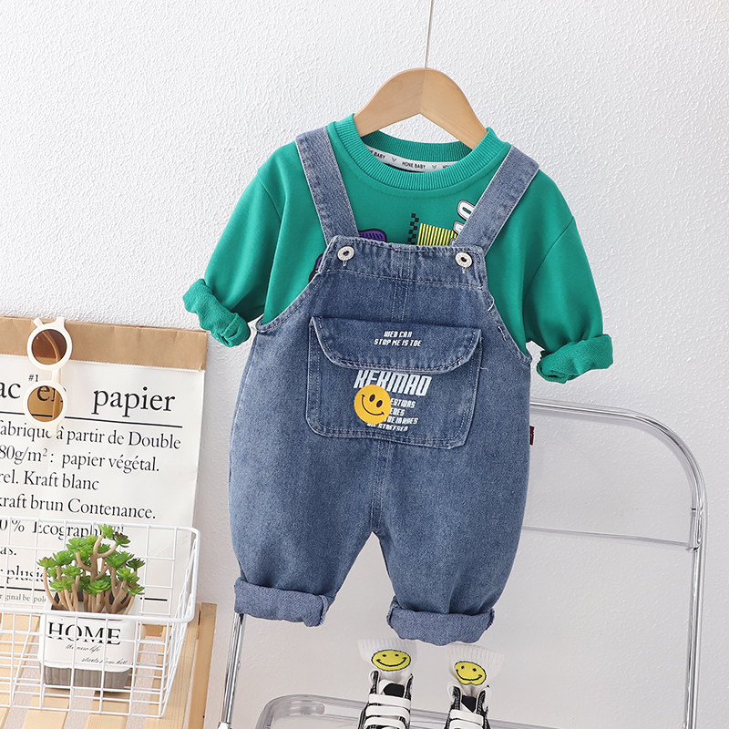 宝宝春装背带裤套装婴儿童春秋衣服1洋气3岁童装男童春装两件套潮