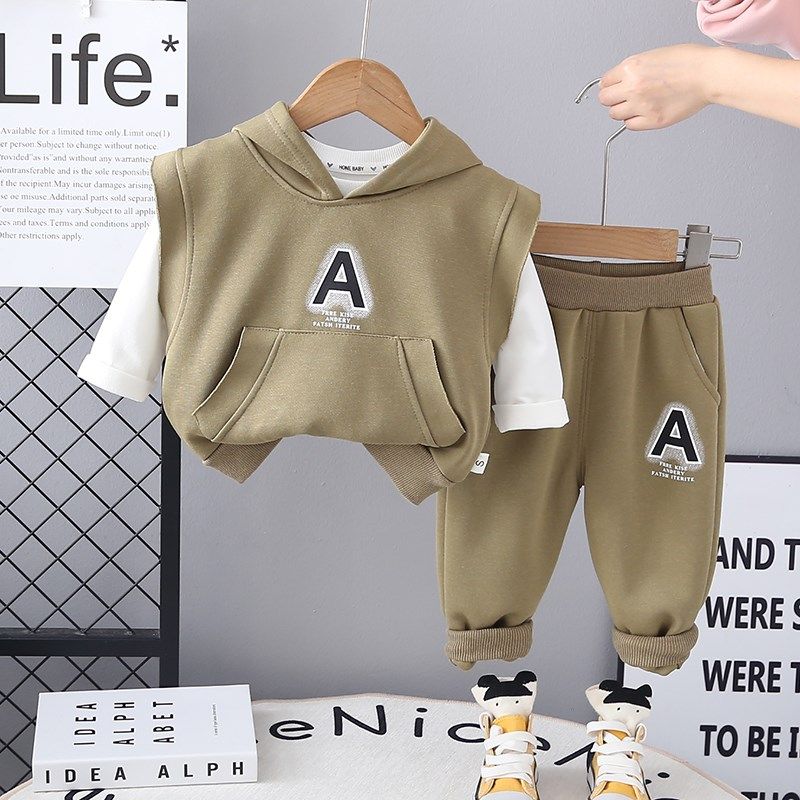 男童套装春秋2025新款洋气宝宝春装马甲三件套小儿童工装潮1-3岁4