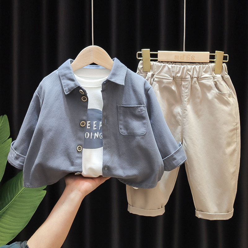 宝宝春装套装1j一3岁男童衬衣网红三件套潮小童韩版洋气衣服童装