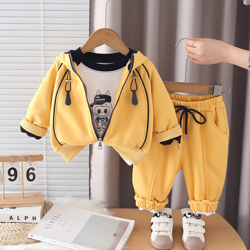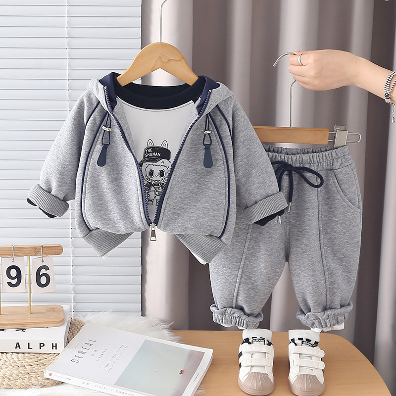 儿童春装1-3岁2026新款男宝宝卫衣三件套洋气小童连帽运动套装4潮