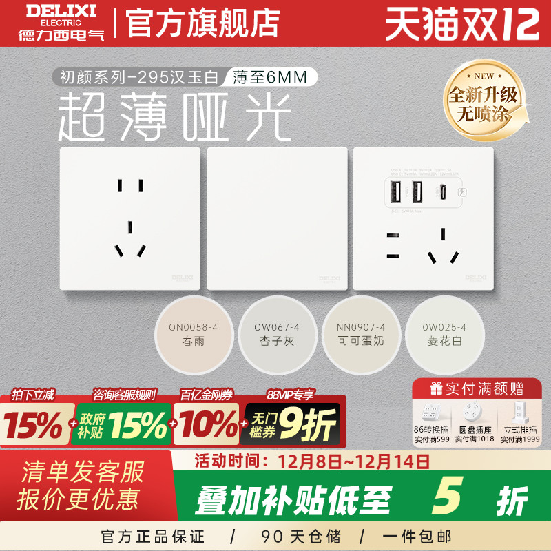 【国家补贴15%】德力西奶油风开关插座面板珍珠白墙壁开关哑光白