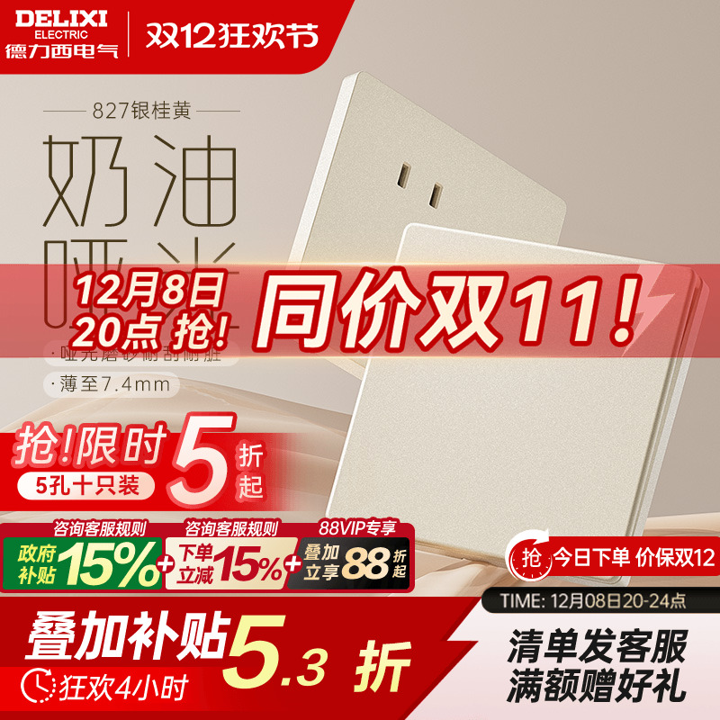 德力西官方旗舰店827奶油风哑光开关五孔插座空调16A面板银桂黄