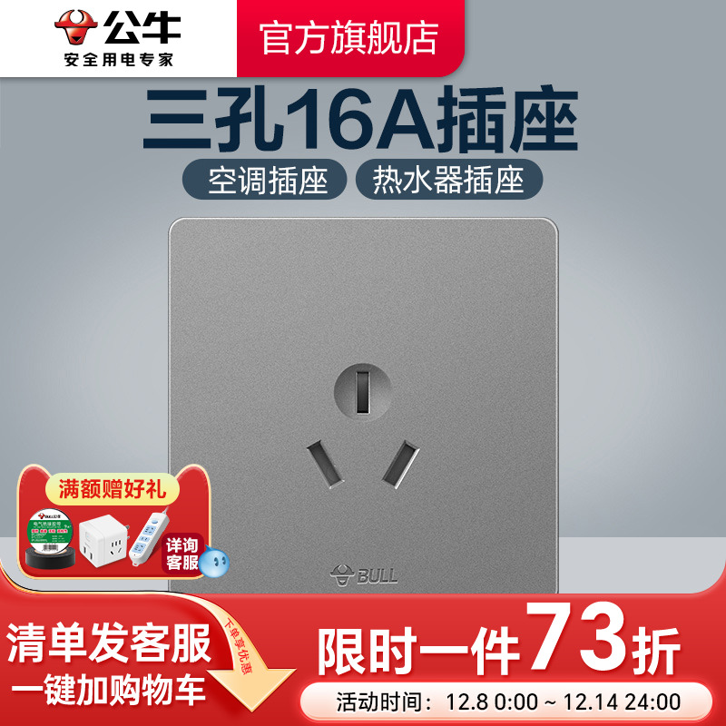 公牛插座旗舰开关插座面板16A大功率86型墙壁空调电源三孔G12灰