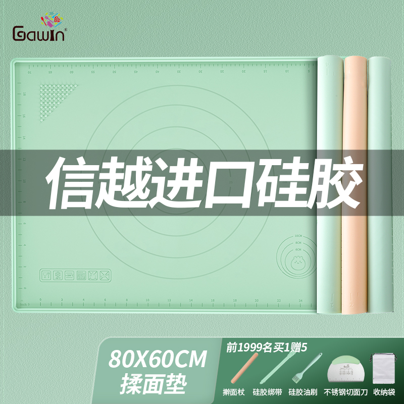 双枪硅胶揉面垫加厚抗菌食品级硅胶垫面板家用擀面烘焙案板和面垫